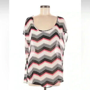 Torrid Pink Black Chevron Print Open Back Sheer Blouse Size M Medium 00