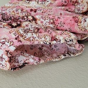 Like new Torrid pink boho floral washable crinkle gauze criss cross back top. Has lining and elastic banding at the waist for stretch
