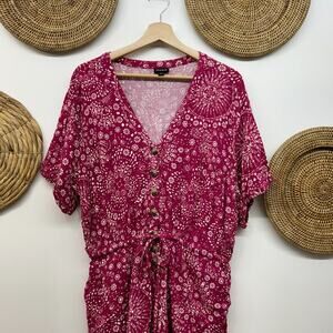Torrid Pink Button Front Tie Waist Print Short Sleeve Romper Shorts Plus Size 1X