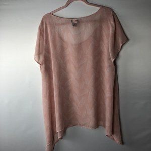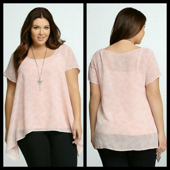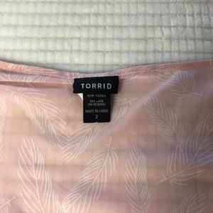 Torrid Pink Feather Print Sharkbite Blouse SZ 2