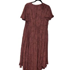 Torrid Pink Floral Burnout Jacquard Wrap Midi Dress 1X 14/16. The sash is missing. Color rose brown. This floral burnout jacquard dress features a surplice neckline, and a midi length.