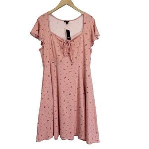 Torrid Pink Floral Mini Bow Front Dress Fit & Flare 1X