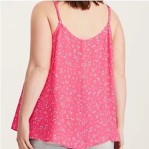Torrid Pink Floral Pleated Chiffon Bodice Spaghetti Strap Swing Cami Top Size 3