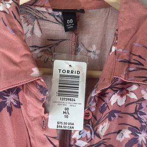 Torrid Pink Floral Print Asymmetrical Hem Belted Button Down Dress Sz 00