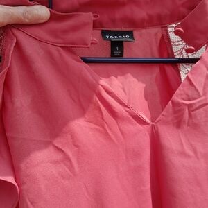 Torrid Pink Georgette Crochet Inset Ruffle Top 1X