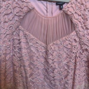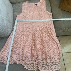 Elegant pink lace maxi dress. Sleeveless design. Perfect for special occasions.