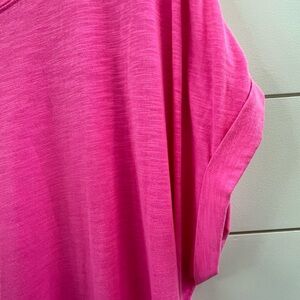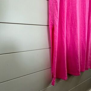 Vibrant pink maxi dress. Short sleeves. Relaxed fit. Perfect for casual outings.