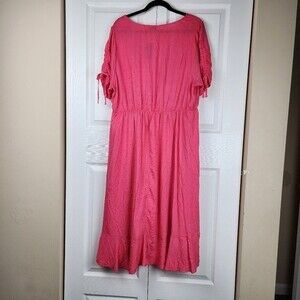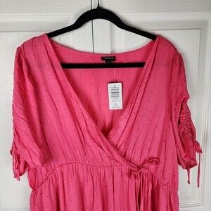 Torrid Pink Midi Dress Faux Wrap Swiss Dot Surplice Ruched Plus Size 2 2X 18-20 Shipping Same or Next Business Day! - New With tag - Size 2 Torrid, 2x|18-20. Approx. measurements in pics - Swiss dot textured woven fabric - 100% rayon - Machine wash cold. Line dry - Surplice neckline Shipping Same or Next Business Day! Thanks for watching!