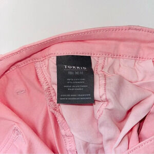 Torrid pink Stretch Twill Chino Skinny Cropped pants. In excellent condition! Mid-rise. Button & zip front closure. Brown tortoise button. Front pockets. Faux back pockets. Skinny fit. Cropped & cuffed ankles. 24.5” inseam. Bubble gum pink color. Size 10.