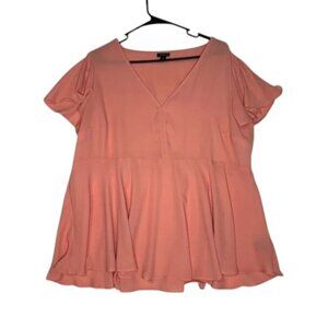 Feminine and flirty pink ruffle sleeve top from Torrid, perfect for everyday wear or dressing up a casual outfit.