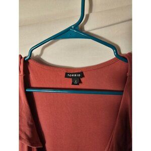 Torrid Pink Ruffle Wrap Top Shirt Blouse Womens Plus Size 2 2X short Sleeve Cute