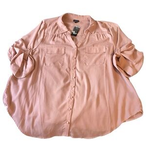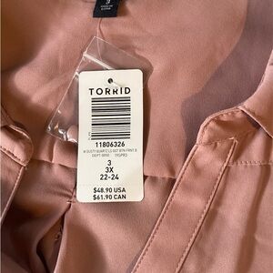 This stylish top from Torrid features a soft pink hue and a notched collar, perfect for adding a touch of elegance to your wardrobe. The short sleeves and buttoned design make it a versatile choice for both casual and business settings. Crafted with attention to detail, this shirt offers a comfortable fit and a polished look.