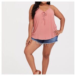 A lace-up detail accents a thin, lightweight cami that drapes beautifully.