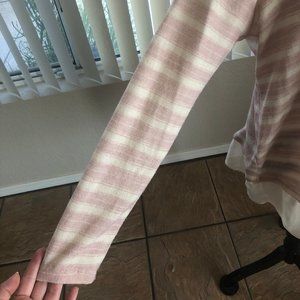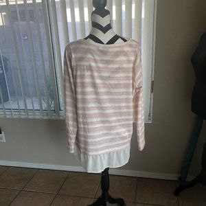 Sorta sheer thin sweater with a separate piece attached only at the bottom to give the illusion of 2 shirts. Size 1