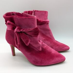 Torrid Pink Velvet Bow Accent Side Zip Heel Ankle Boot 9WW