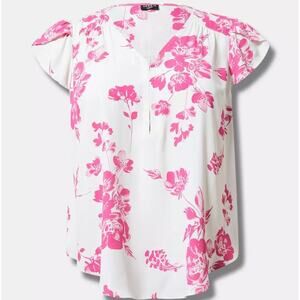 Torrid Pink & White Floral Haper Georgette Hook & Eye Blouse Size 1X