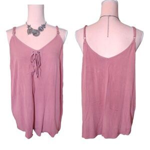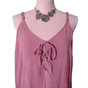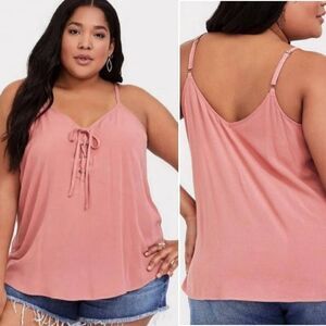 lace up v- neck front, v- neck back, adjustable straps, thin lightweight 100% rayon