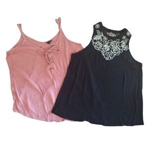 Torrid Pink And Black White Embroidered Tank Tops Size Large Bundle of 2