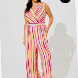 Torrid Pink & Yellow Stripe Super Soft Surplice Jumpsuit Sz.2 NWT