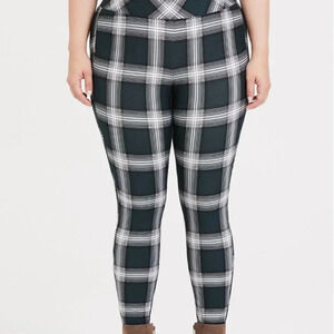 Torrid Pixie Pant Leggings Ponte Slim Fix Dark Green White Plaid Plus Size 2X