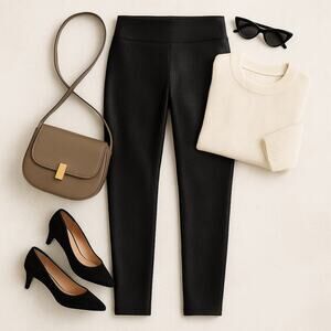 Details: Pull-on, hidden compression waistband, smoothing ponte, high rise