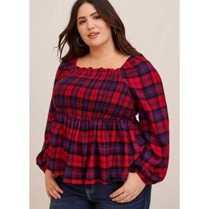 Torrid Plaid Brushed Rayon Acrylic Smocked Red Top Size 3X