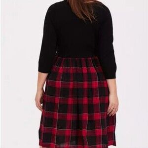 Torrid Plaid Challis to Knit Dress Plus Sz 2X Holiday Mini Dress NWOT Pockets