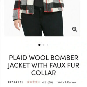 Torrid Plaid Checkered Wool Bomber Jacket Sz 2 (2X)