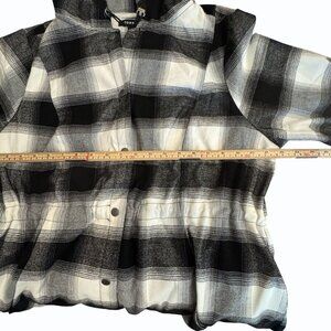 This stylish plaid flannel anorak jacket by Torrid is perfect for a cozy and chic look. With a hooded design and snap pockets, it combines functionality with fashion.