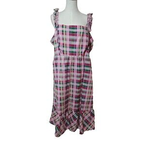 Torrid Plaid Green & Pink Poplin Tiered Ruffle Strap Dress Size 3X -Like new condition-