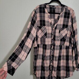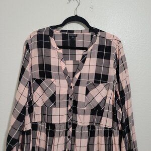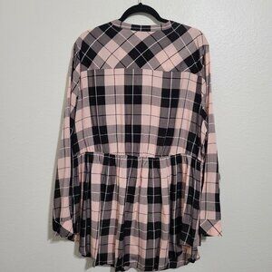 Torrid Plaid Pink Black Long Sleeve Peplum Button Up Blouse Size 3x (3)