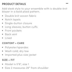 Torrid Plaid Studio Double Knit Blazer - Size 1 (14/16)***