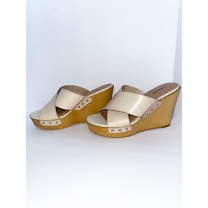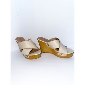 Torrid Platform Wedge Sandal Studded Faux Wood Crisscross Bone Beige Boho 8 WW