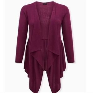 Torrid Plum Asymmetrical Hem Open Draped Cardigan
