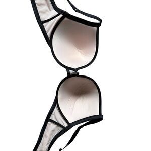The blush pink mesh cups have plush padding that push the breasts up and toward the center for dramatic lift and major cleavage. However, this time we embellished the Push-Up style with hand-stitched black rose embroidery all over and black satin trim all along the straps and piping. Mesh lining on the back keeps it breathable.