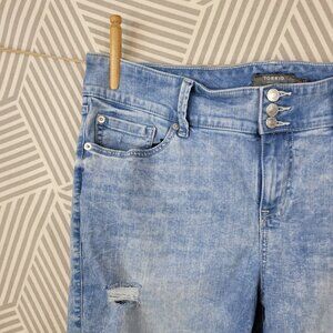 Torrid Plus 18 18W Denim Shorts Blue Jean Bermuda Distressed Stretch Light Wash