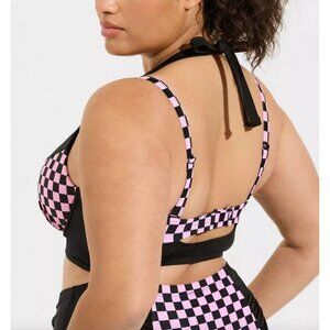 Torrid Plus 2-D/DD Lightly Lined Checkered Underwire Halter Plunge Bikini Top