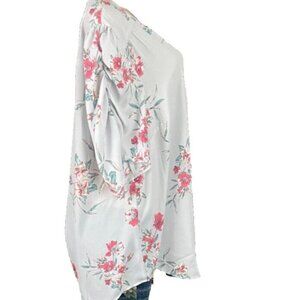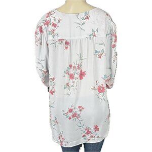 Torrid Plus 3 Light Gray Floral V-Button Neckline Ruched Half Sleeve Blouse