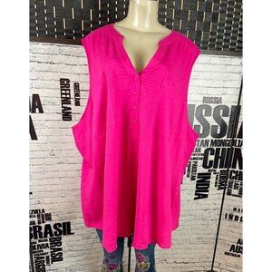 Torrid Plus 5 Pink Split Neck Linen Blend Pockets Curved Hem Sleeveless Blouse