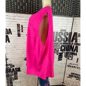 ITEM: Torrid Plus 5 Pink Split Button Neck Linen Blend Chest Pockets Curved Hem Sleeveless Blouse