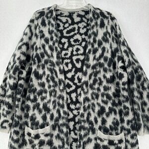 Torrid Plus 5X Cardigan Sweater Grey Leopard Longline Knit Open Front Animal