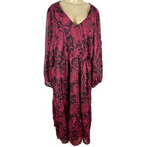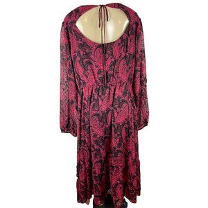 Torrid Plus 6 Paisley Chiffon Lined Tie Open Back Sheer Long Sleeve Midi Dress