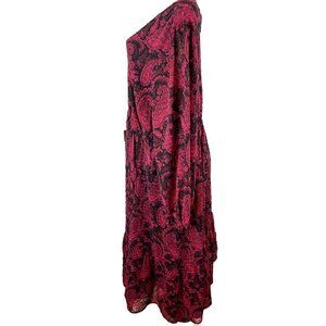 Item: Torrid Plus 6 Red-Black Paisley Chiffon Lined Tie Open Back Sheer Long Sleeve Midi Dress