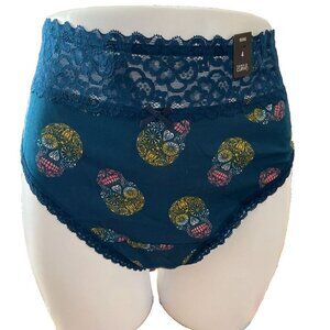 ITEM: Torrid Plus 6 Teal Blue Calaveras Skull Print Wide Lace Waistband Thong Panties