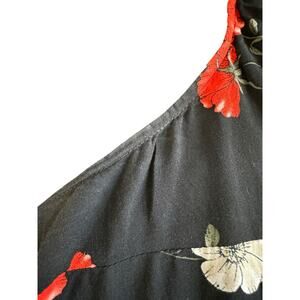 Torrid Black Red Floral Casual Print V-Neck Sleeve Button Front Blouse. This beautiful Torrid blouse features a stunning black and red floral print that is perfect for any casual occasion. The V-neckline and button-front design add a touch of elegance, while the comfortable fit makes it ideal for all-day wear. In excellent condition, this blouse is a must-have for your wardrobe!