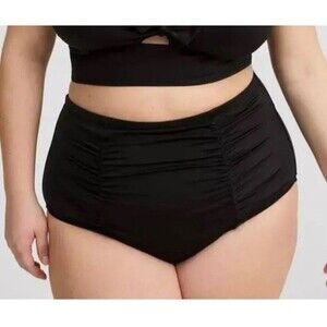 Torrid Plus High Waist Ruched Bikini Swim Tankini Bottom 5X (5) Black New