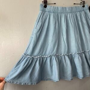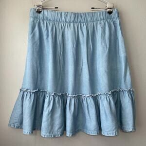 Torrid light blue chambray denim A-line ruffled skater skirt in excellent pre-owned condition!