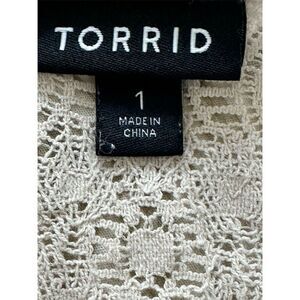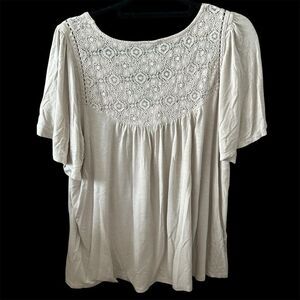Torrid Plus Size 1 Beige Lace Trim Blouse Short Sleeve Casual Top