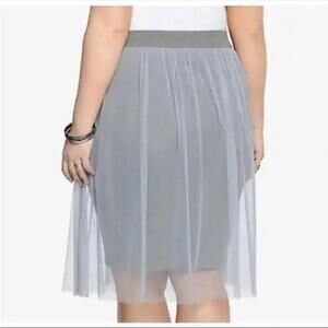 Torrid Plus Size 1 Gray Fitted Knit Bodycon Mini Skirt w Tulle Tutu Mesh Overlay