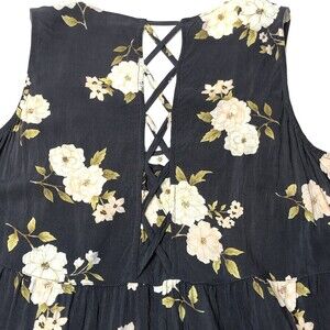 Torrid Plus Size 1 Gray White Floral Challis Babydoll Tank Latice Back Flowy